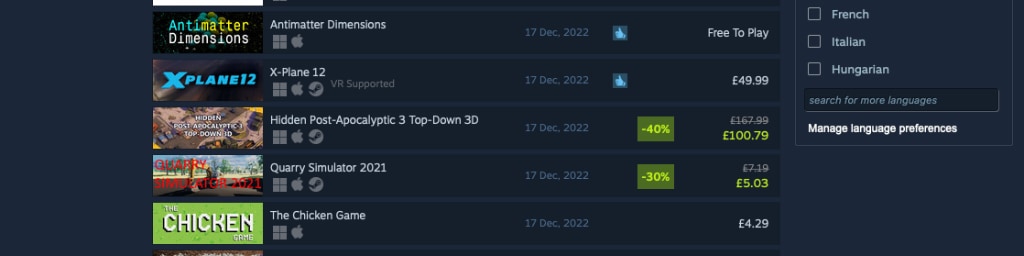 Just look at that image. Like why would they do that. Hidden Post-Apocalyptic 3 Top-Down 3D has a 40% discount for a sweet deal of a steal at £100. That dev is clearly using 4D sales strats. ‘Don’t underprice yourself. You get that one sale and you’re set for life!’ This is a hidden object game, seriously, that at best looks average. It becomes clearer what’s up when you see the bundle offer. You can get it along with another shitty looking badly priced game for only £3. For some reason they think having a 99% discount on the bundle will get enough eyes on it for more sales. I guess. It’s got positive reviews too. I don’t know if they were also on a 99% discount.