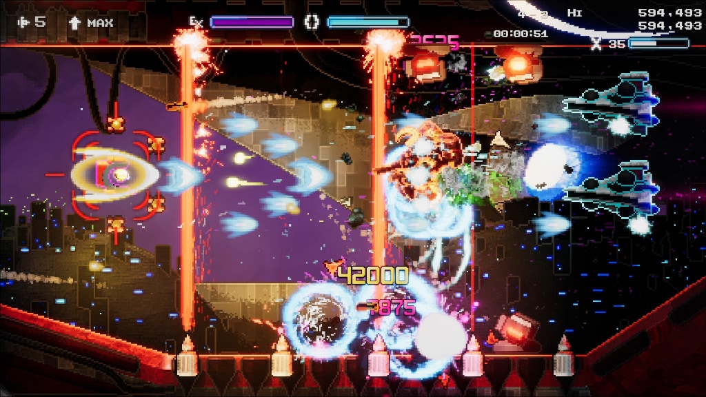 “Outnumbered and outgunned in deep space? No problem! Turn your enemies’ attacks into pure bullet heaven with your shield tech and absorb projectiles to power up your ship and score big! But when your shield expires and it’s danger time, you better switch up your strategy fast…”