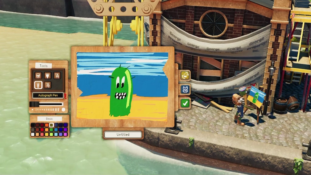 Gameplay is a mixture of adventure and art. Meeting people generally results in an artist commission of some sort, completion in turn advances their stories. I don’t sense any strict requirement to be ‘good’ at art to progress. Merely a genuine attempt to fulfil the brief. Some quest art pieces appear around town, an incentive to make a little extra effort. At anytime you can knock out a masterpiece and sell it on the street. Even my hack attempts made something. The story is leading me towards the art museum. Perhaps one day I’ll have my own exhibition.